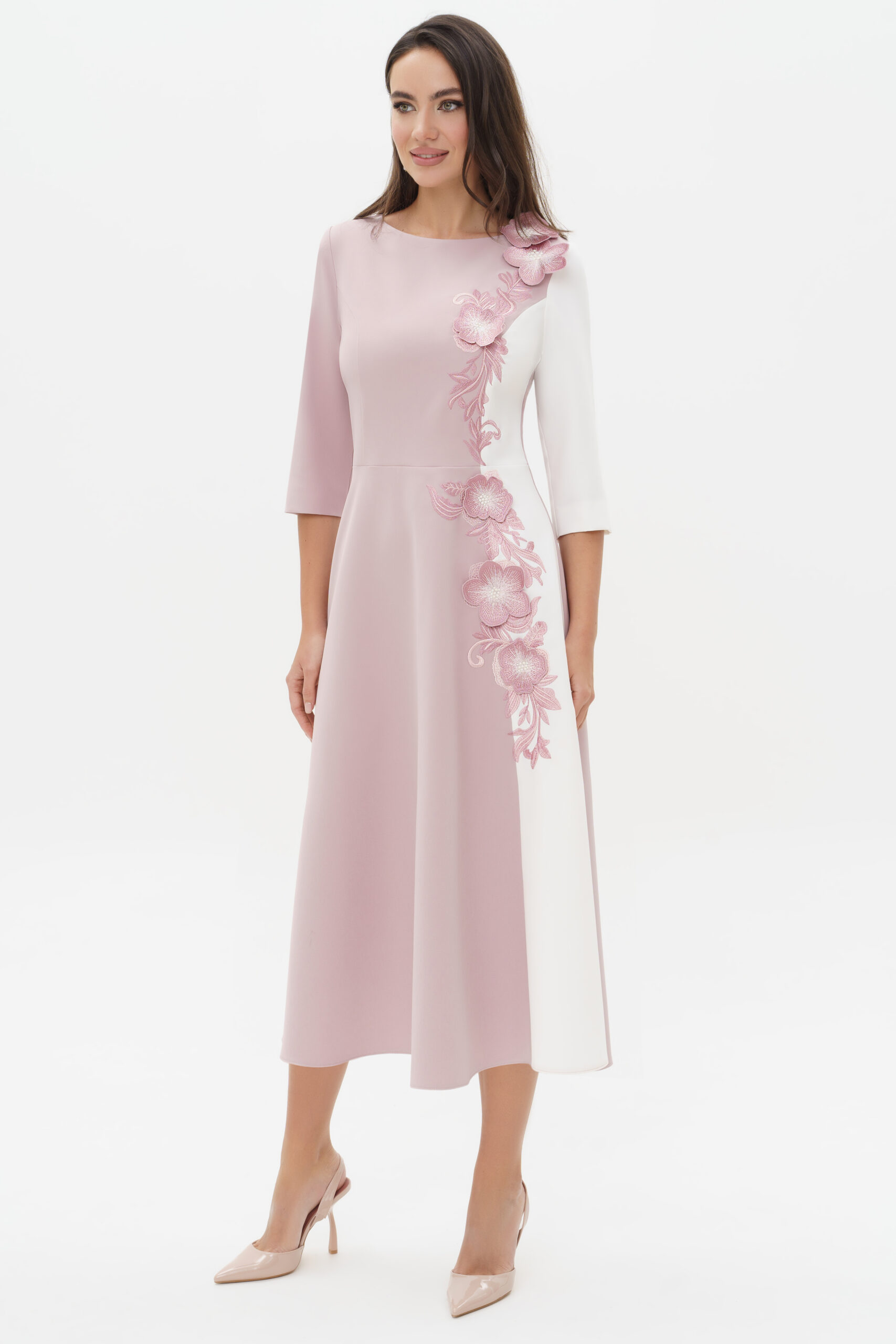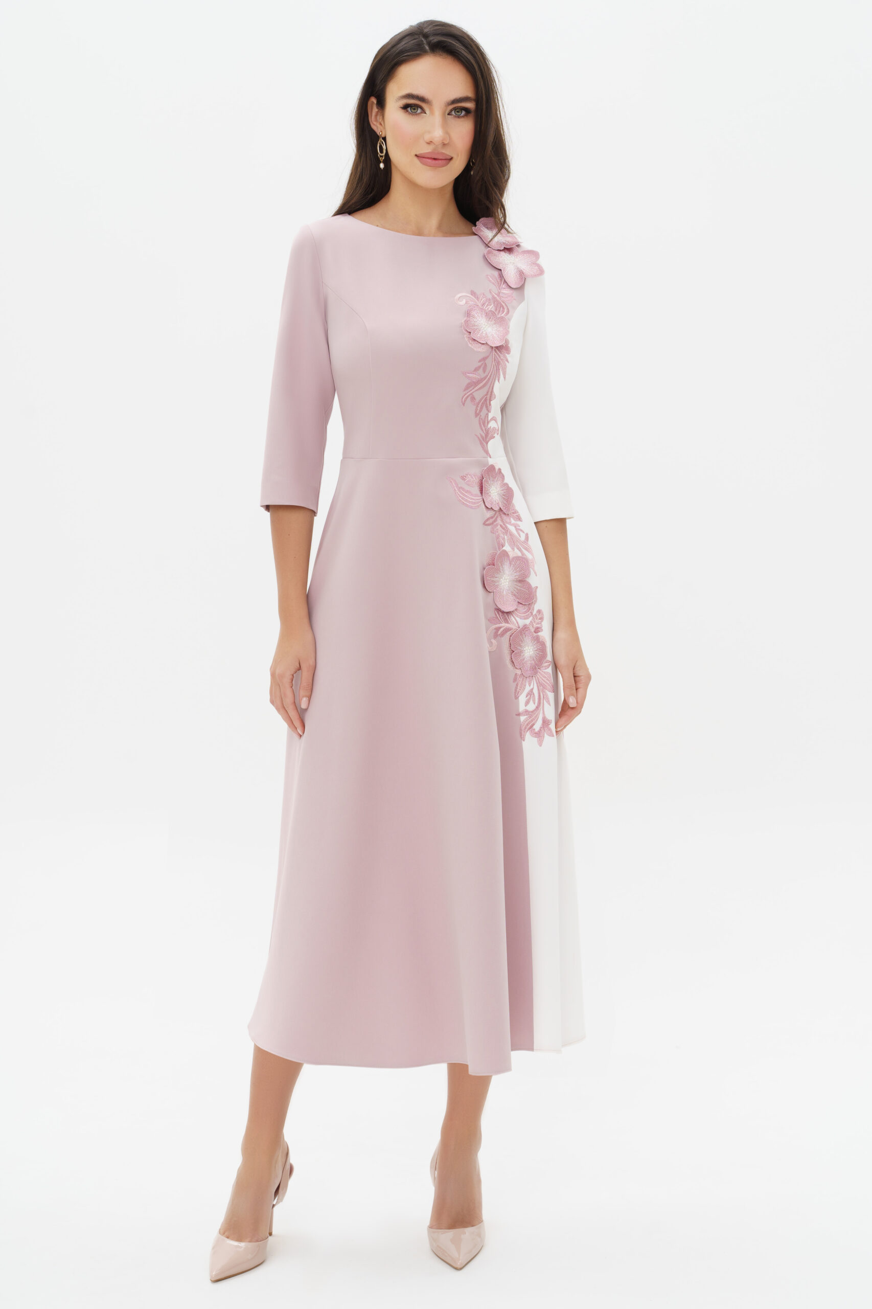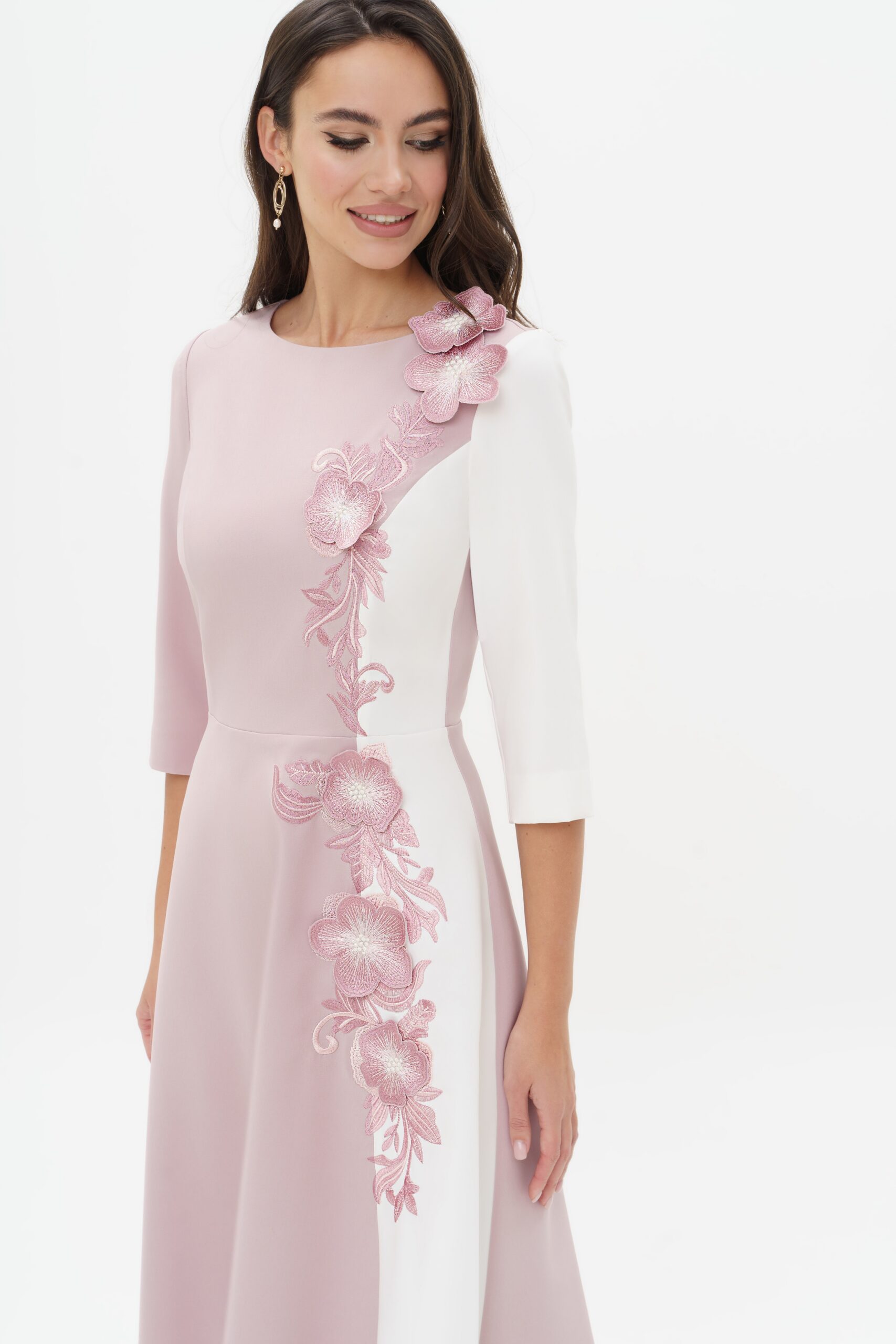 Изящное платье с цветочной вышивкой сочетает в себе легкость и женственность, основой для которого послужили две гармонирующие друг с другом ткани. Вышивка в виде цветочных мотивов, акцентирует внимание на его красоте и неповторимости. Такое платье станет идеальным выбором для романтического свидания или торжественного мероприятия, подчеркивая индивидуальность своей обладательницы.